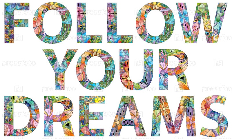 Художественный дизайн ручной росписи. Нарисованные вручную слова иллюстрации СЛЕДУЙТЕ СВОИМ МЕЧТАМ для футболки и других украшений