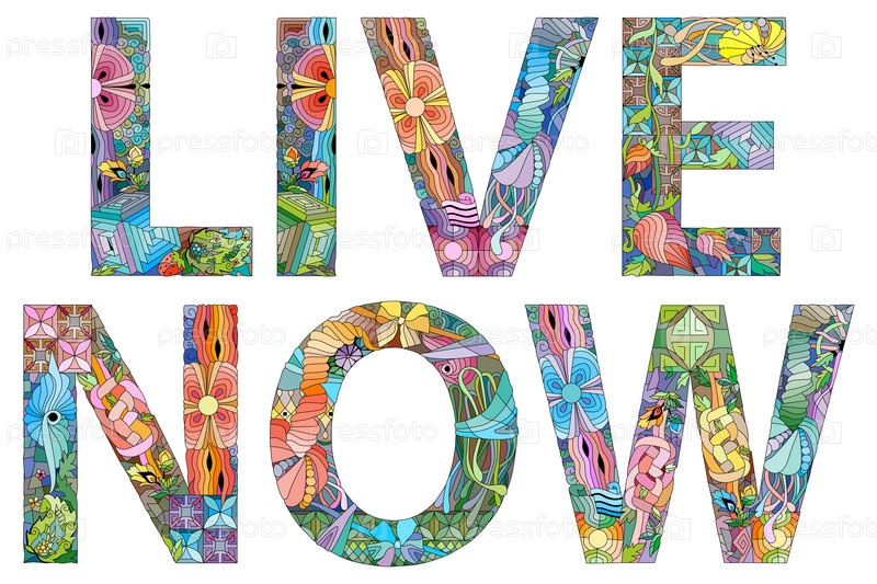 Художественный дизайн ручной росписи. Нарисованные от руки слова иллюстрации Живи сейчас для футболок и других украшений