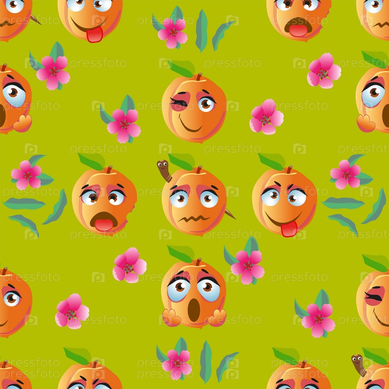 Бесшовный рисунок с персиками смайликов. Смешные милые лица персонажей