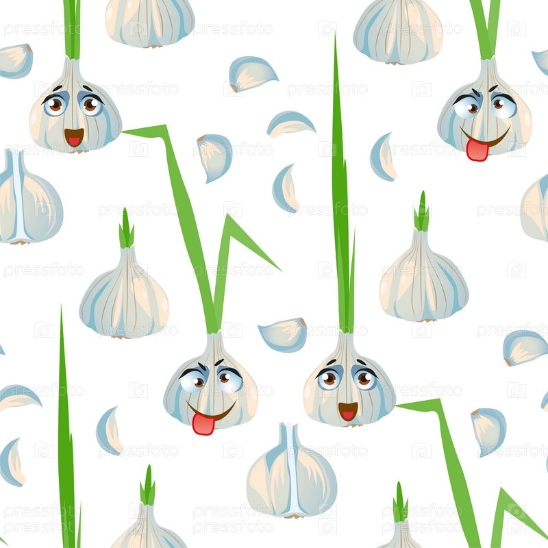 Бесшовный узор из чеснока. Смешные милые лица персонажей