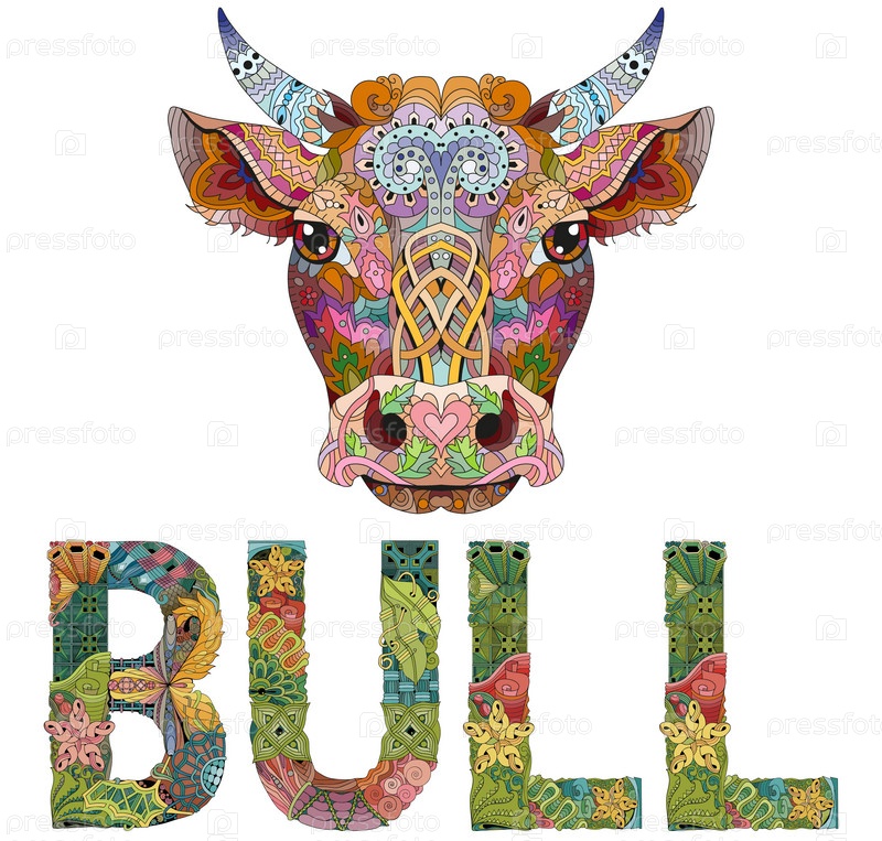 Энтангл, отличный дизайн для любых целей. Бычий текстильный принт. Сила природы. Дизайн татуировки