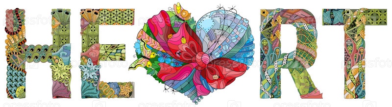 Художественный дизайн ручной росписи. Ручной рисунок слова СЕРДЦЕ для футболки и других украшений