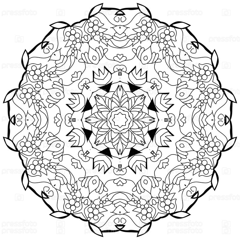 Круговой орнамент ручной работы для раскраски страницы