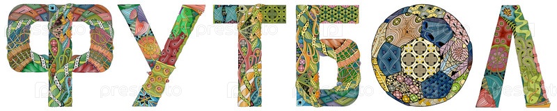 Художественный дизайн ручной росписи. Нарисованная рукой иллюстрация слова футбол на русском языке для книжки-раскраски