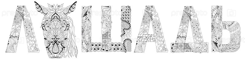 Художественный дизайн ручной росписи. Ручной рисунок слова лошадь на русском языке для футболки и других украшений