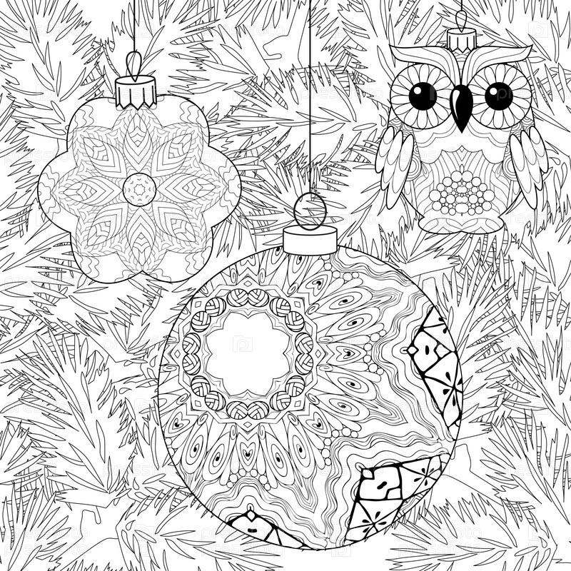 Рождественские украшения с ветвями елки в стиле zentangle с чистыми линиями для окраски
