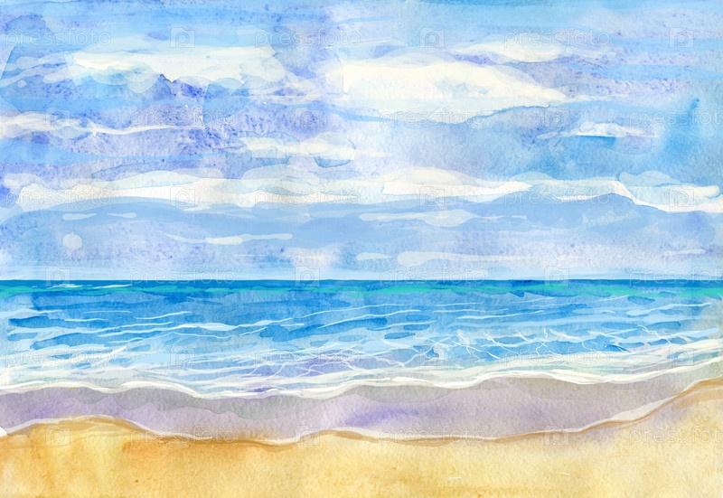 Акварельный пляж и красивое тропическое море
