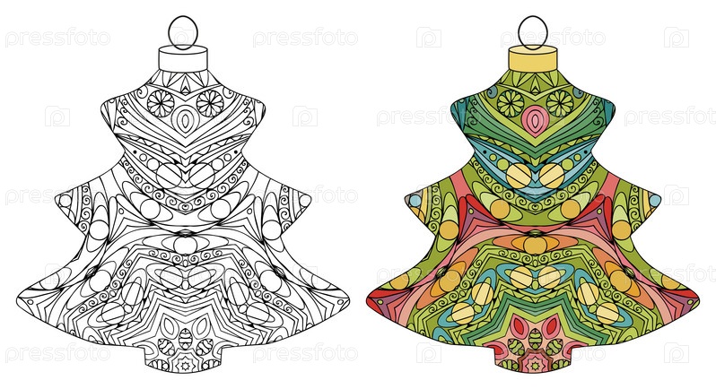 Zentangle стилизованные рождественские украшения. Ручной рисунок векторного ожерелья. Шар для покраски и крашенный образец