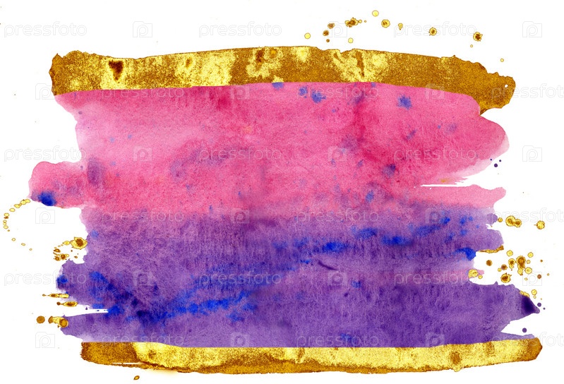 Розовые, серые и золотые акварельные мазки на белом фоне