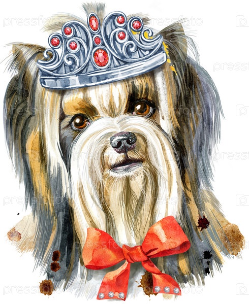 Акварельный портрет породы йоркширский терьер Собака в серебряной короне