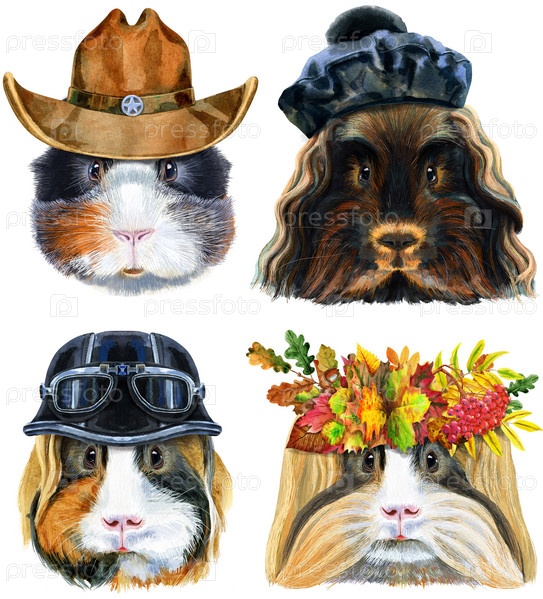 Морские свинки для графики на футболках. Акварельная иллюстрация тощей морской свинки