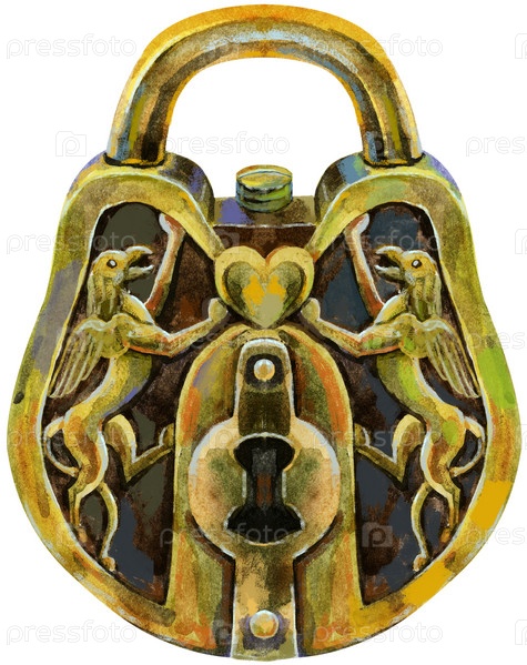 Акварель винтажный золотой замок на белом фоне