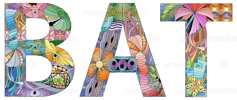 Слово BAT в стиле абстрактного ручного рисунка. буквы с орнаментом