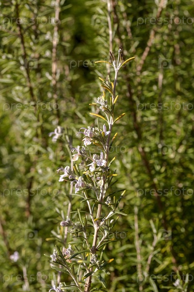 Ветвь куста розмарина (Rosmarinus officinalis) в крупном плане