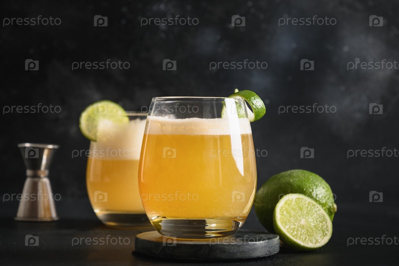 Писко кислый коктейль украсьте лаймом на черном фоне. Аперитив для праздничной вечеринки