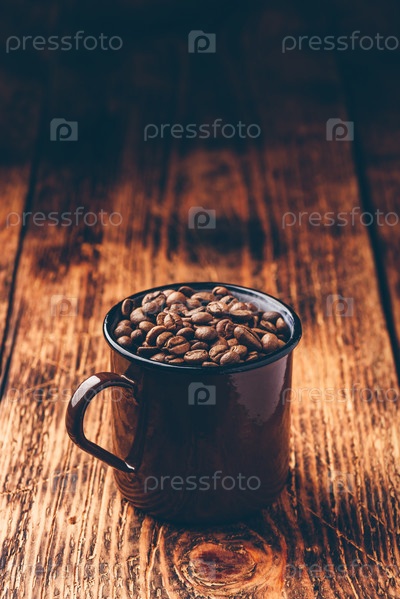 Кружка, полная жареных кофейных зерен