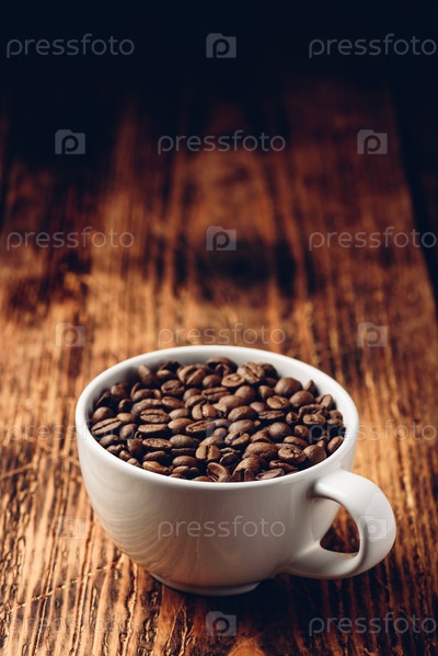 Жареные кофейные зерна в белой чашке