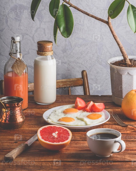 Здоровый завтрак с яйцами, кофе и фруктами