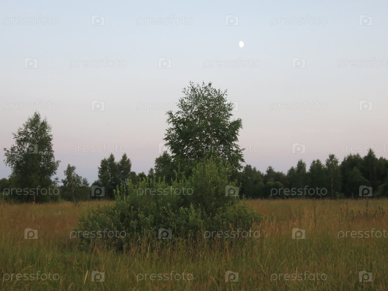 Вечерние сумерки летом над полем