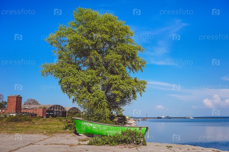 Пейзаж с видами Балтийской косы на фоне голубого неба
