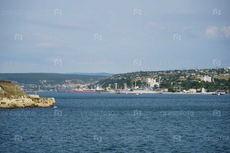 Город Севастополь с моря с множеством зданий и кораблей