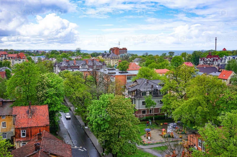 Зеленоградск, Россия-17 мая 2016 г.: Великолепный городской пейзаж, который можно увидеть со смотровой площадки водонапорной башни в центре города