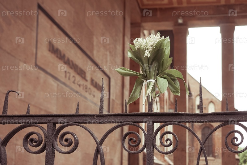 Букет ландышей на металлической ограде могилы Канта в Калининграде