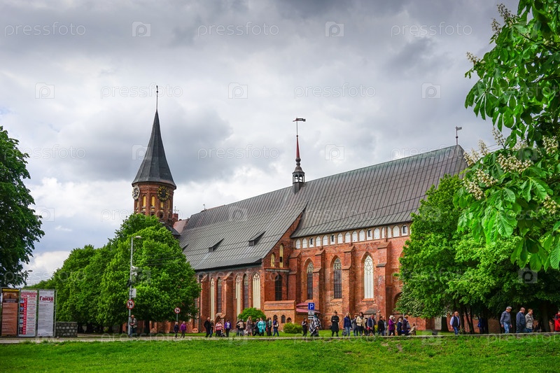 Достопримечательность древнего городского собора под облачным небом среди зеленых деревьев