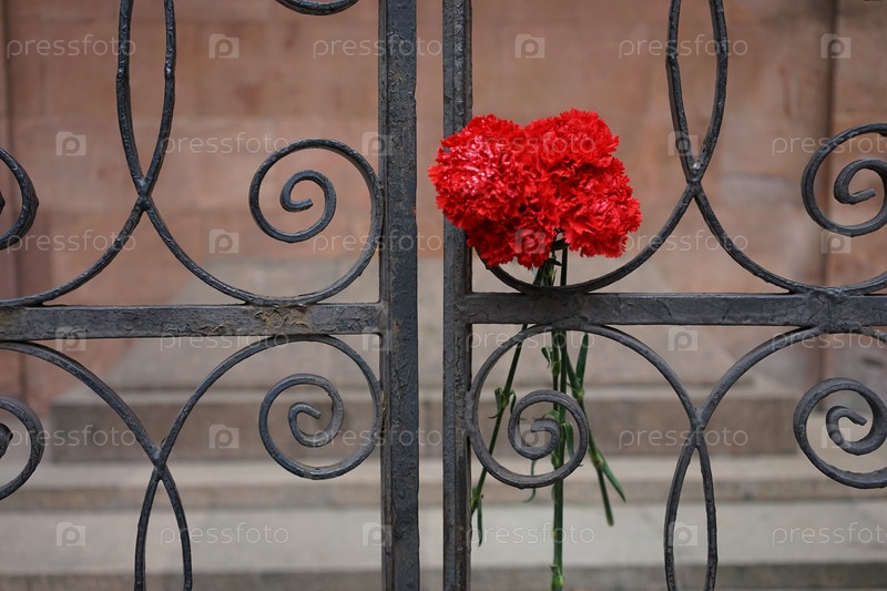 Цветы на могиле великого философа Канта кованая металлическая решетка в Калининграде