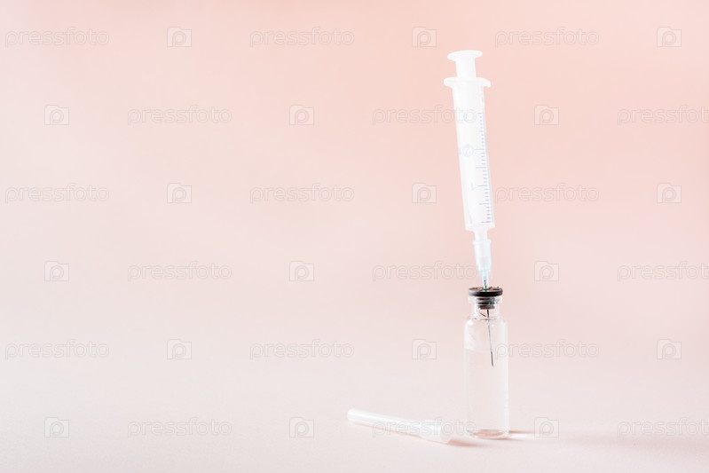 Вакцинация и иммунизация. Игла шприца вставлена в стеклянный флакон с вакциной