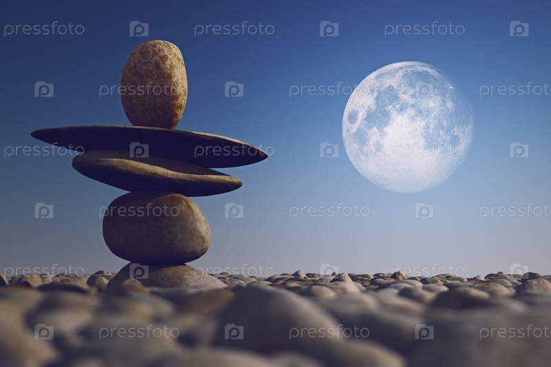 Сложенные камни в солнечном свете с луной