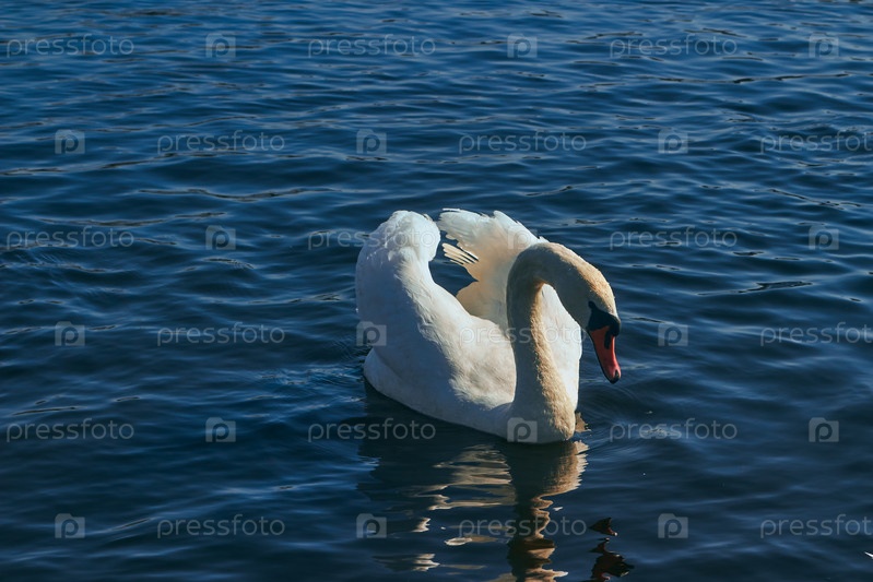 красивый белый лебедь плавает