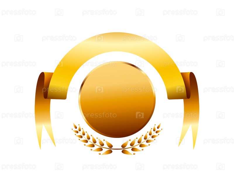 Баннер с золотой лентой с пустой этикеткой и лавровыми ветвями. Золотой баннер с лентой и ветками