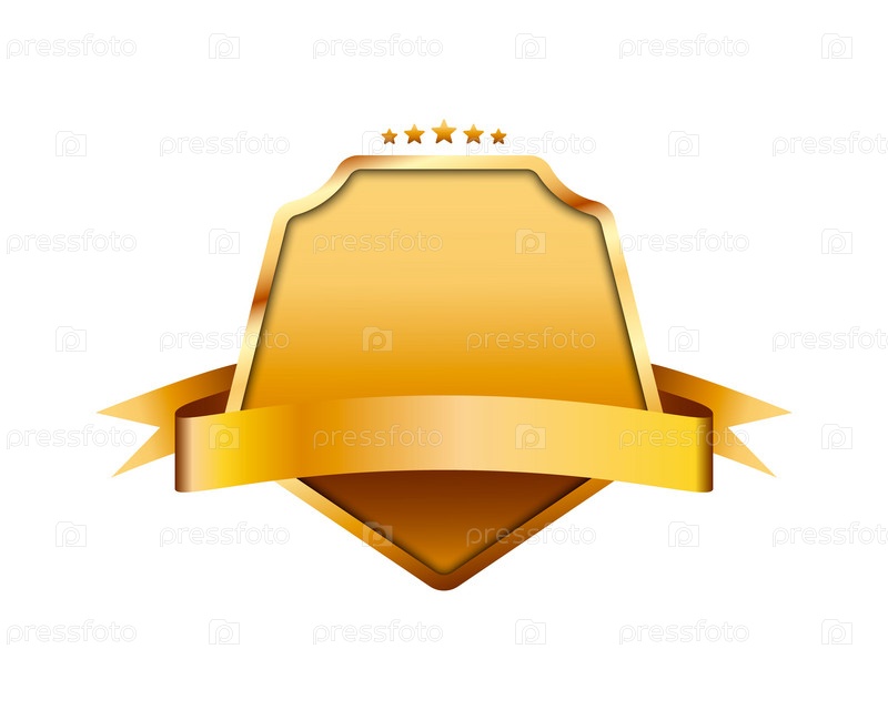 Баннер с золотой лентой с пустой этикеткой и звездами. Золотые баннеры с лентой