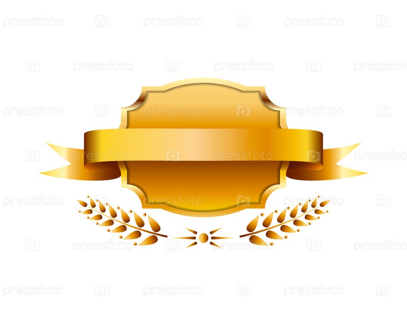 Баннер с золотой лентой с пустой этикеткой и лавровыми ветвями. Золотой баннер с ленточкой и ветками