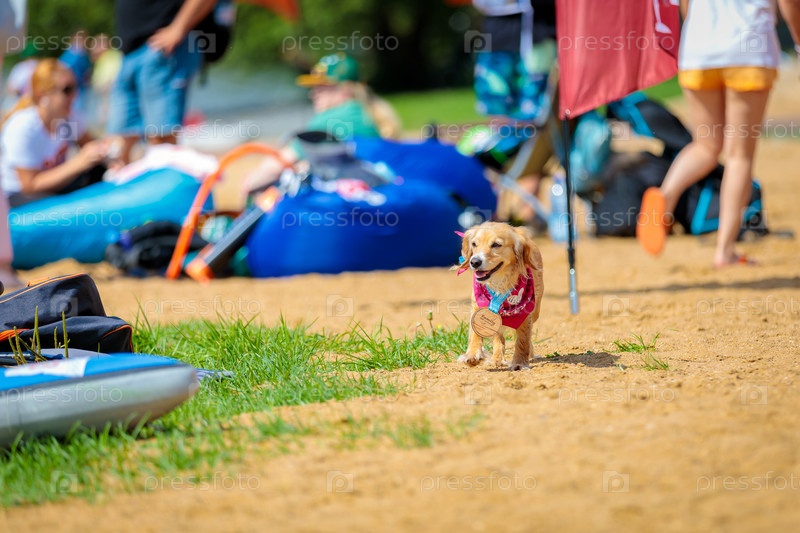 Собака награждена медалью в соревнованиях по гребле на надувных досках с веслом, с животным. Россия Зеленоград 14 августа 2021