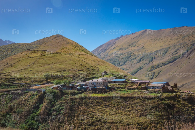 Панорама гор и населенных пунктов Северной Осетии. Северный Кавказ