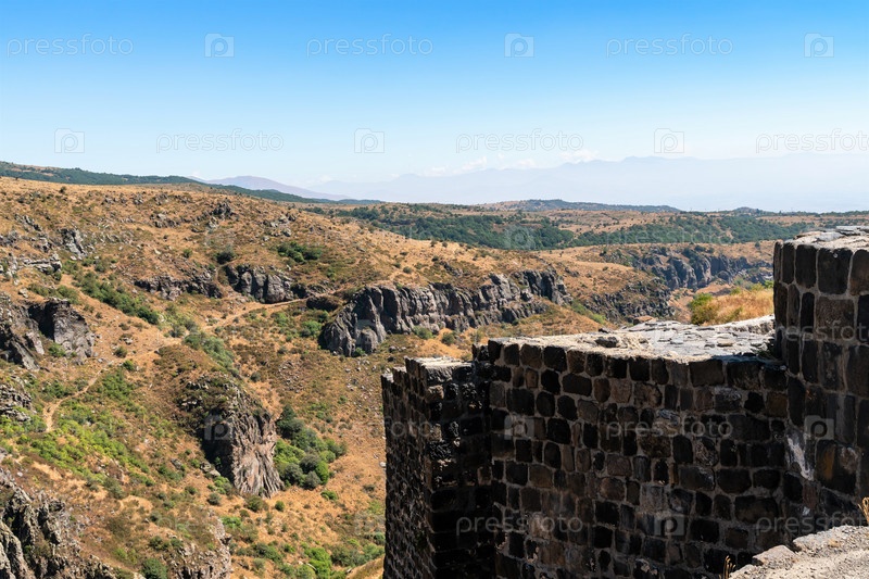 Армения, Амберд, сентябрь 2022 г. Фрагмент стены древней крепости