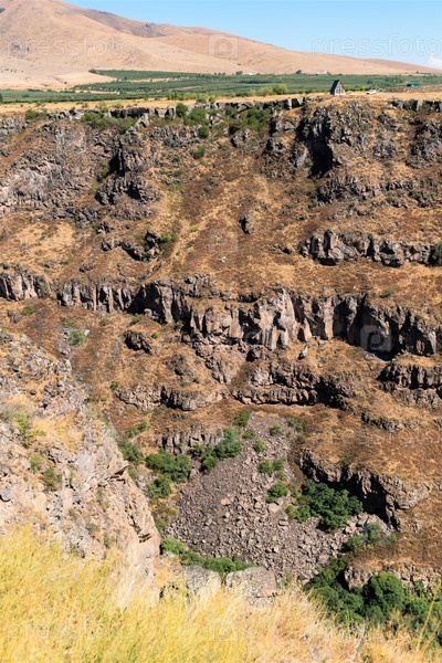 Армения, Сагмосаванк, сентябрь 2022 г. Небольшой дом на краю огромного ущелья