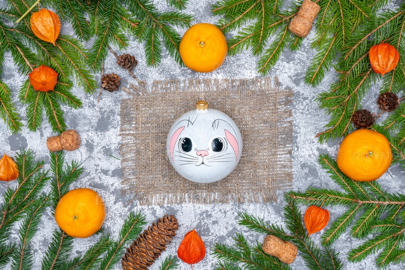 Новогоднее украшение, ветки елки и игрушки. Макеты Рождественских открыток
