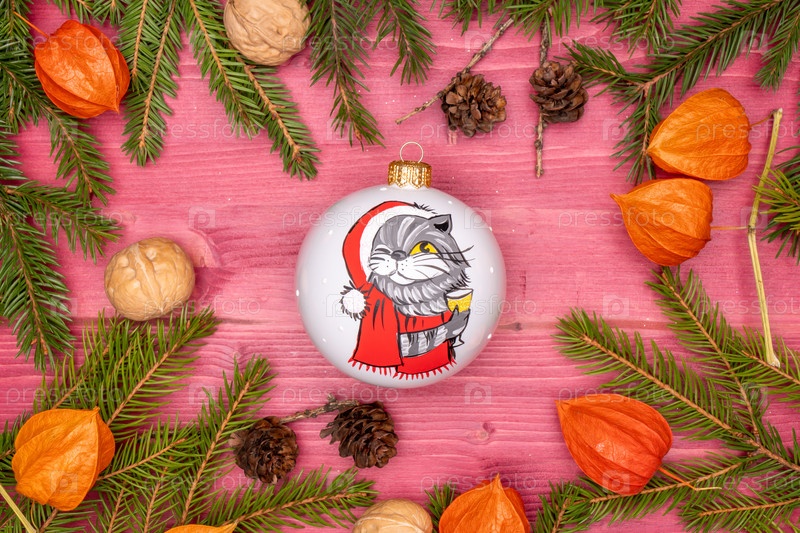 Новогоднее украшение, ветки елки и игрушки. Макеты Рождественских открыток