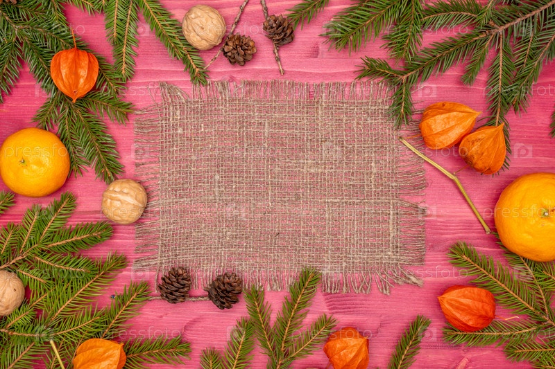 Новогоднее украшение, ветки елки и игрушки. Макеты Рождественских открыток