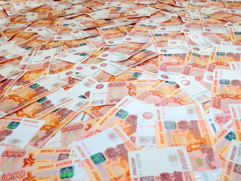 Связка пятитысячных российских рублей как элемент хозяйства и торговли
