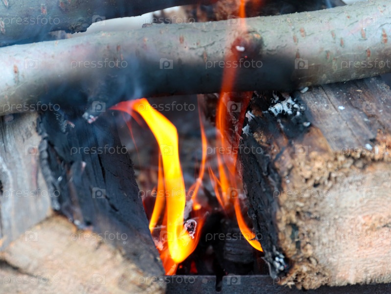 Раскаленное пламя и куски угля в огне