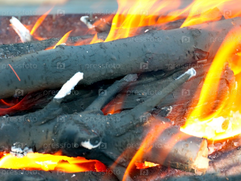 Раскаленное пламя и куски угля в огне