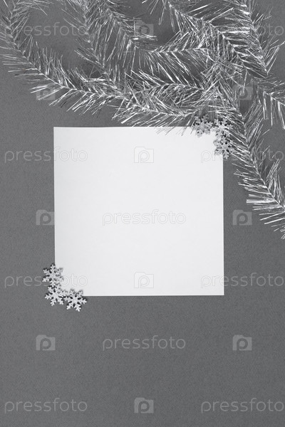 Рождественский макет с серебряными снежинками на сером фоне. С Новым Годом. Зимняя концепция. Место для текста