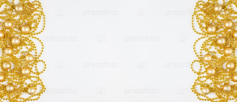 Рождественский баннер с золотой гирляндой на белом фоне. С Новым Годом. Место для текста. Зимняя концепция. Открытка