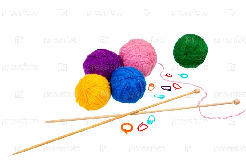 Вязальные спицы и клубки пряжи