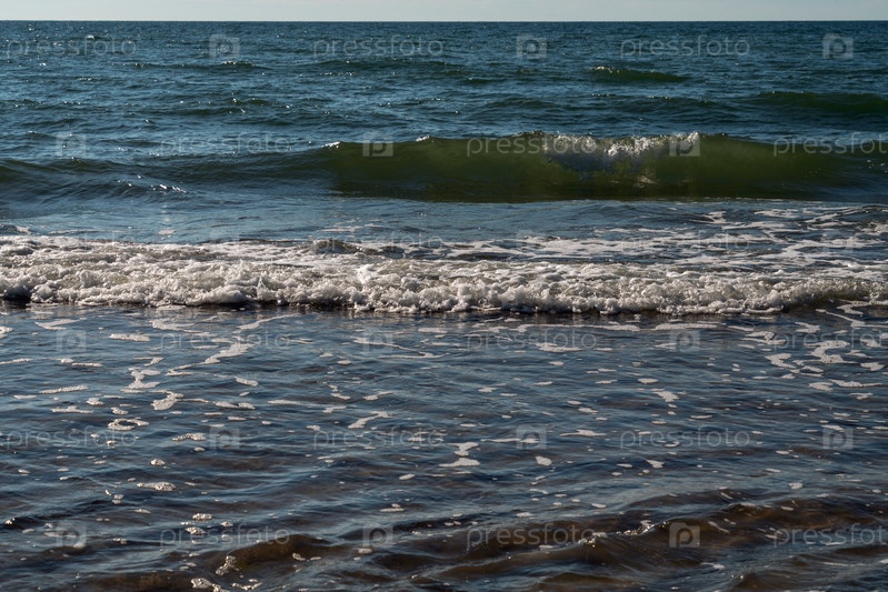 Вид на прибывающую волну на Балтийском море на берегу Куршской косы в летний день, Калининградская область, Россия