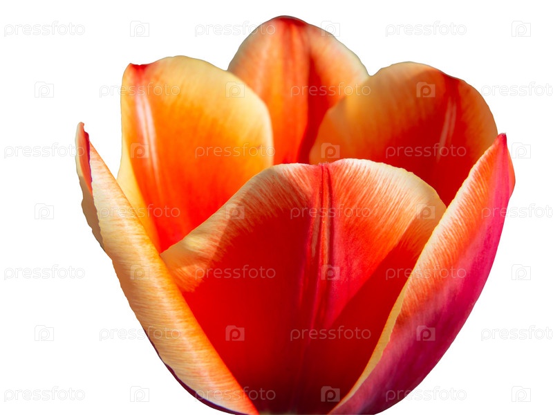 Крупный план красно-желтого бутона тюльпана на белом фоне